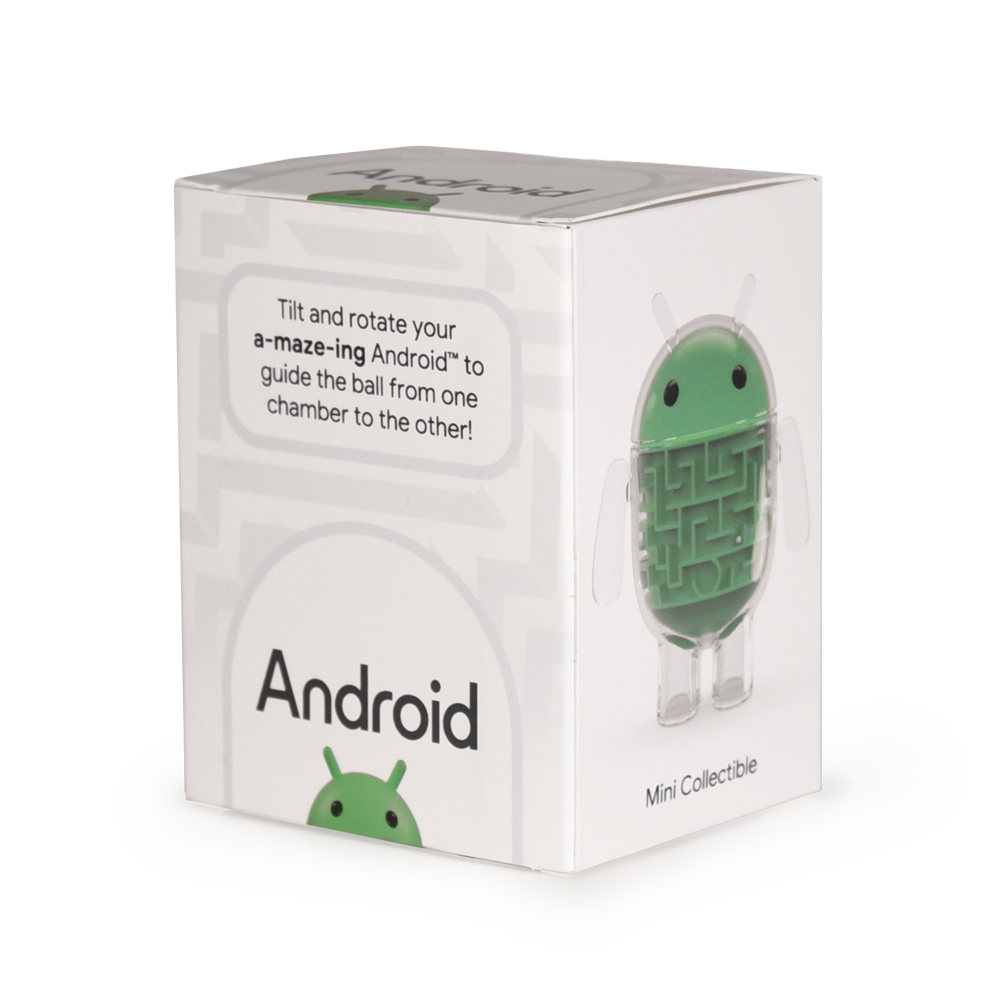 Tilt and rotate your a-maze-ing Android to guide the ball from one chamber to the other! It makes the perfect addition to your desk or shelf.