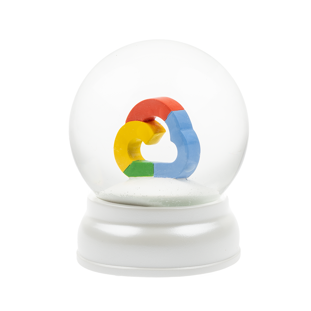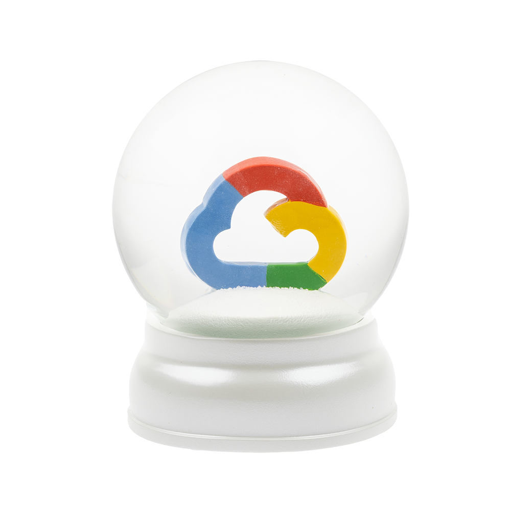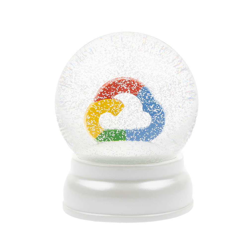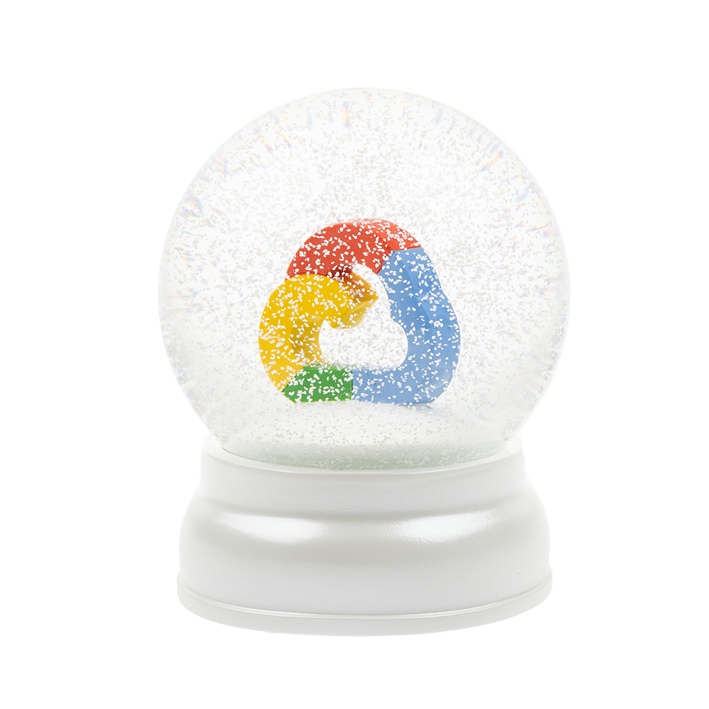 Give it a shake! This Google glass globe makes the perfect festive ornament, and inside you’ll find the Google Cloud logo.