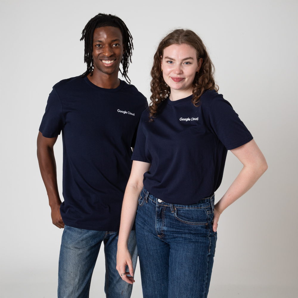 Classic navy crewneck with the Google Cloud wordmark to the left chest.