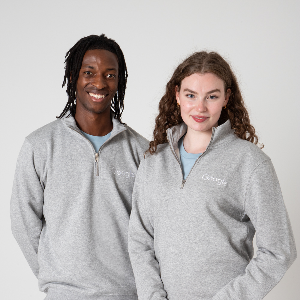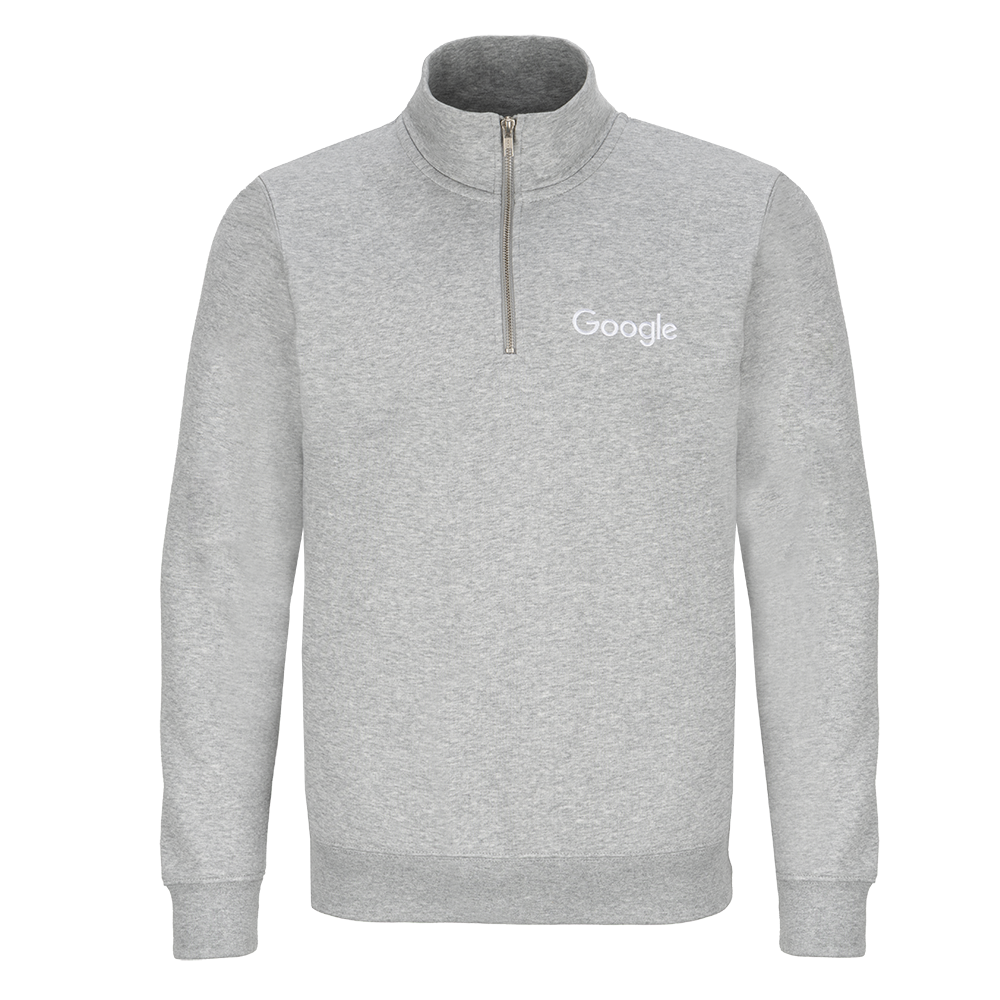 A soft grey quarter-zip with an embroidered grey Google logo to the left chest. This trendy warmer is perfect for topping off your autumn style.